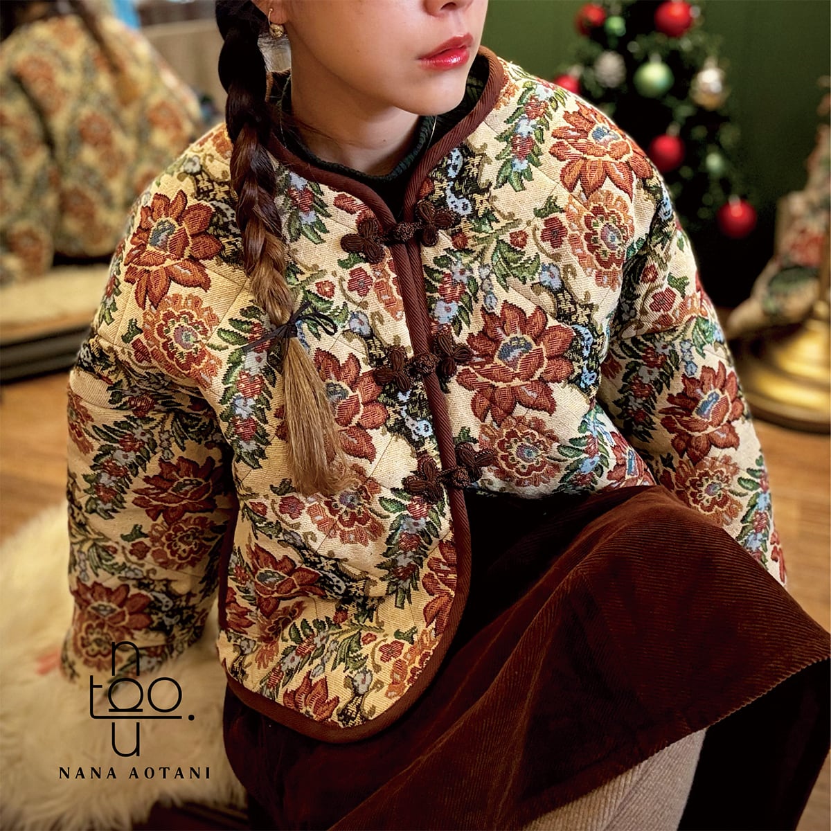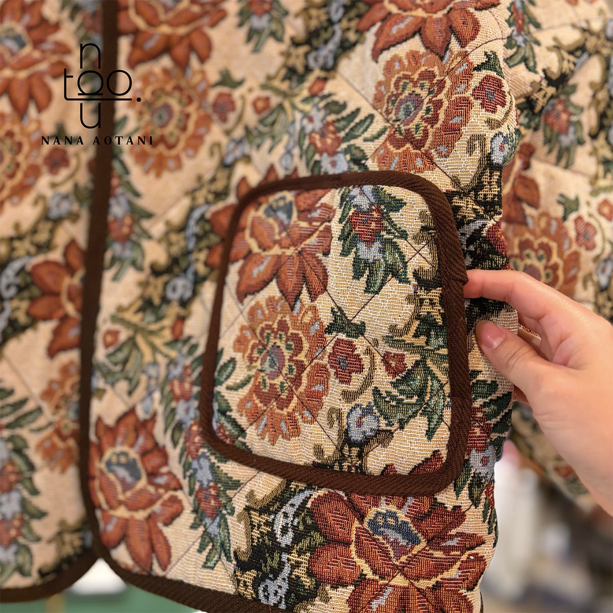 ゴブラン生地にキルティングを施し、寒い日でも着て頂ける軽くて暖かいゴブランジャケットを仕立ててみました✨