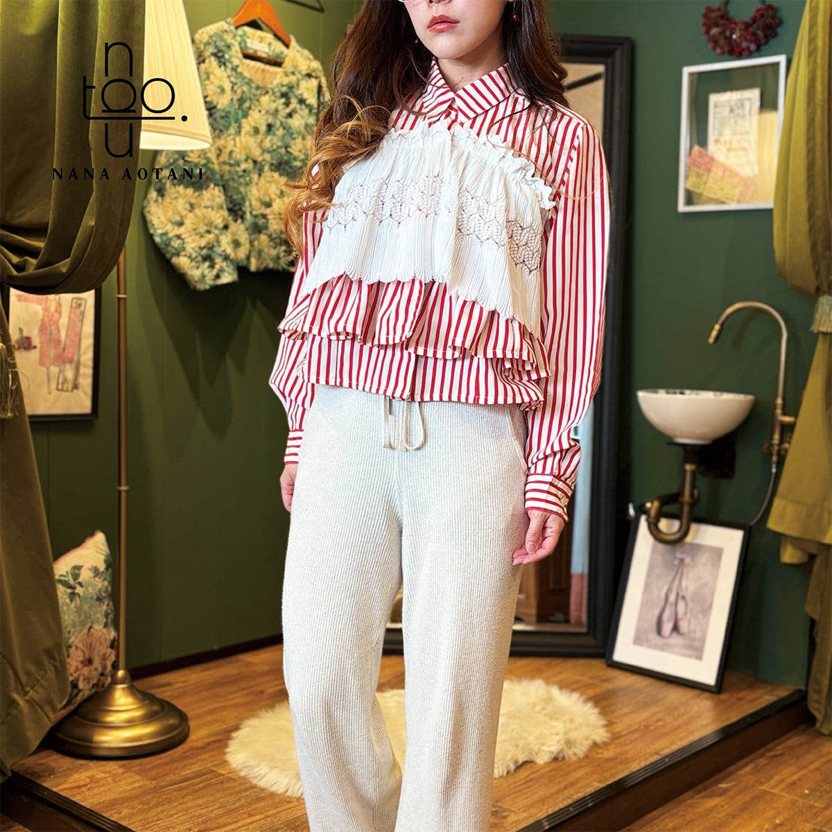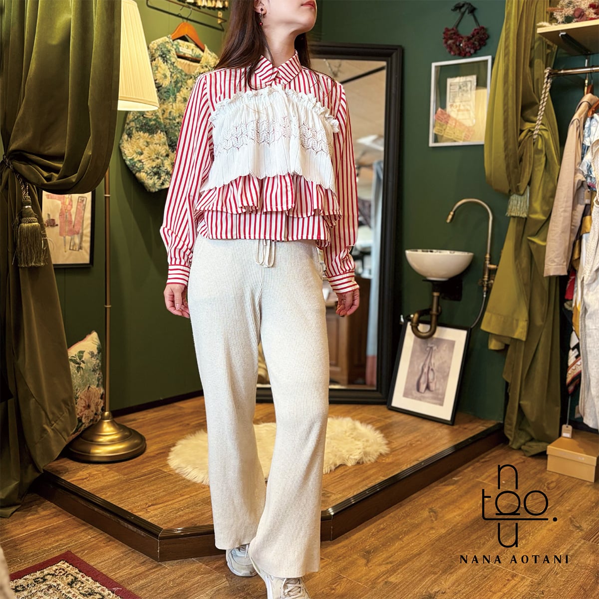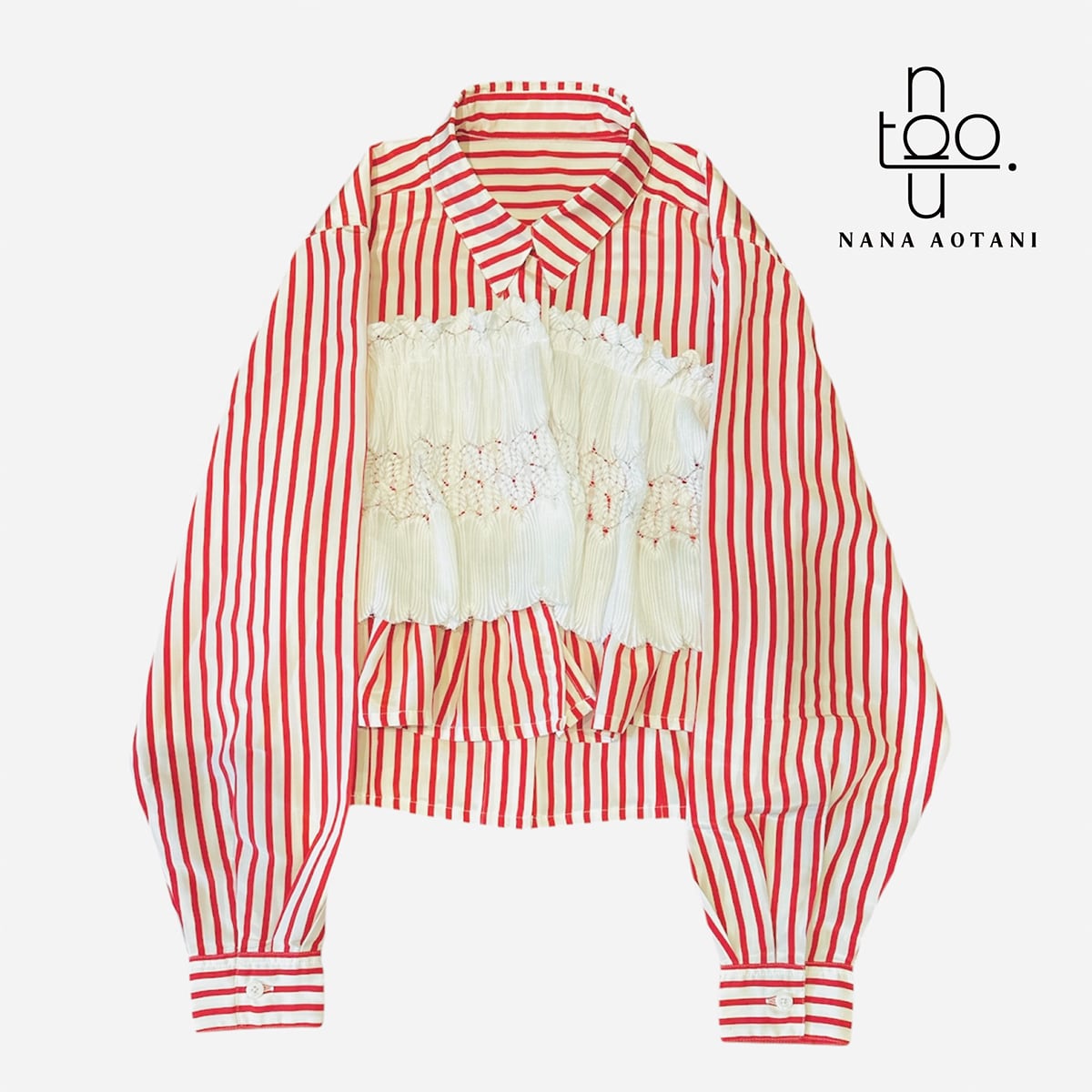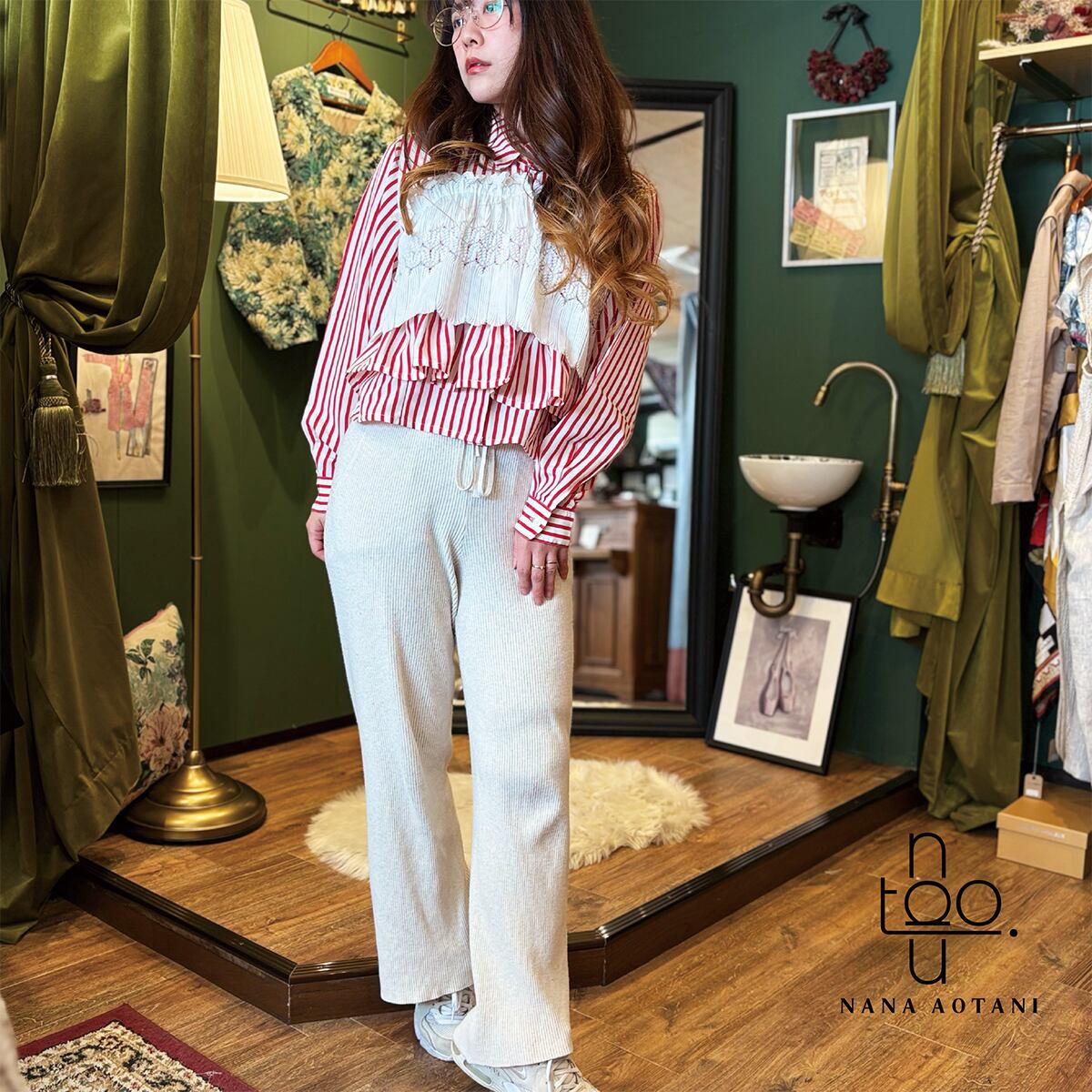 [リメイク作品] 古着のレッドストライプシャツと古着のレースのトップスを使ってリメイク作品に仕上げました。 後ろのレース部分は固定はしておりませんが、ゴムを通しているので程よくフィットします。 size バスト:106cm 着丈 :48.5cm 袖丈 :57cm カフス周り:18.5cm 首周り:40.5cm 肩幅 :40cm ポリエステル 100% 中古品:古物商許可証 大阪府公安委員会 許認可番号 第62233R044581号