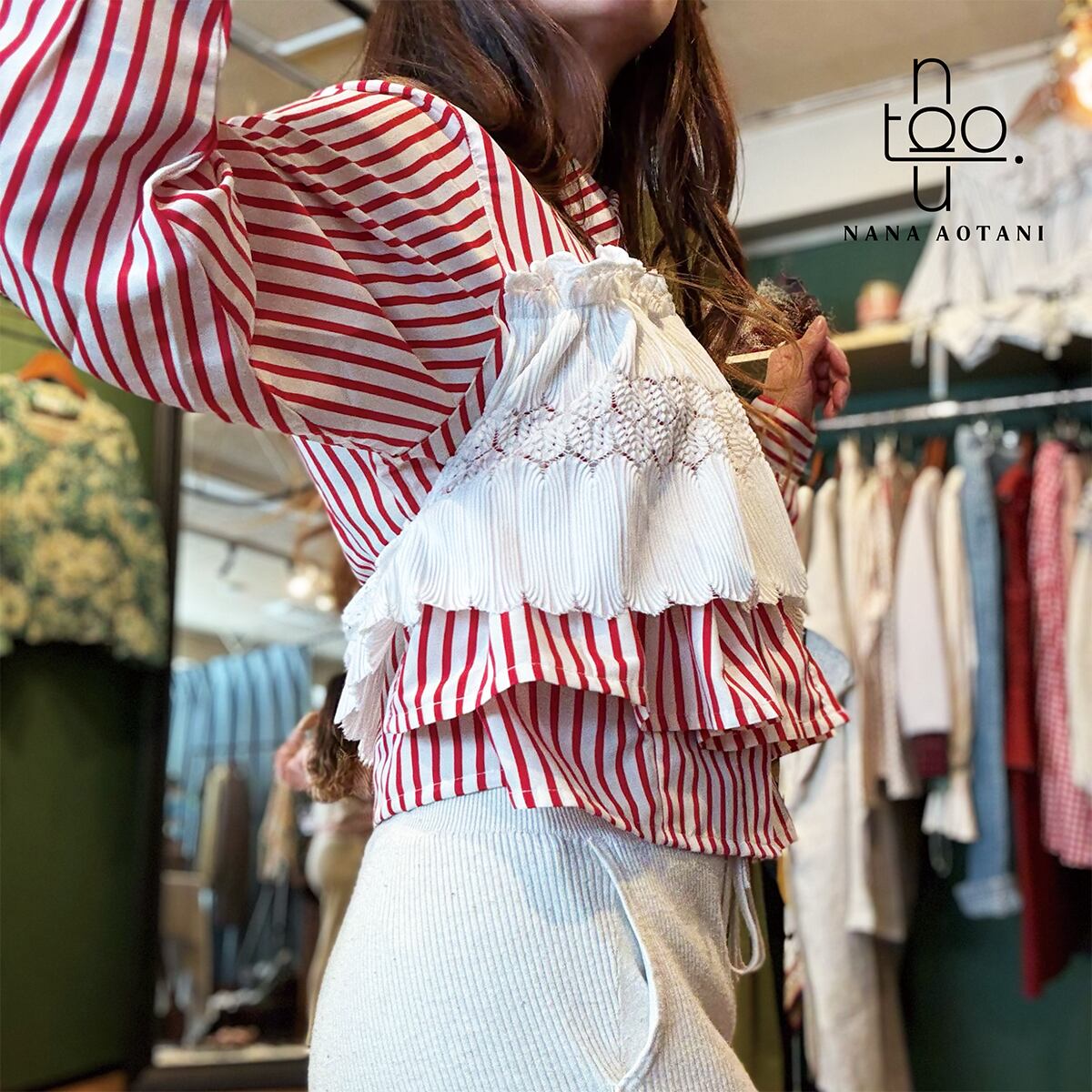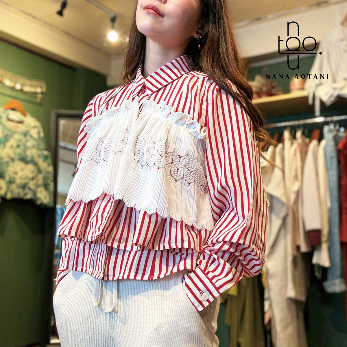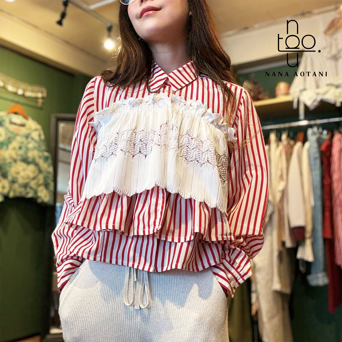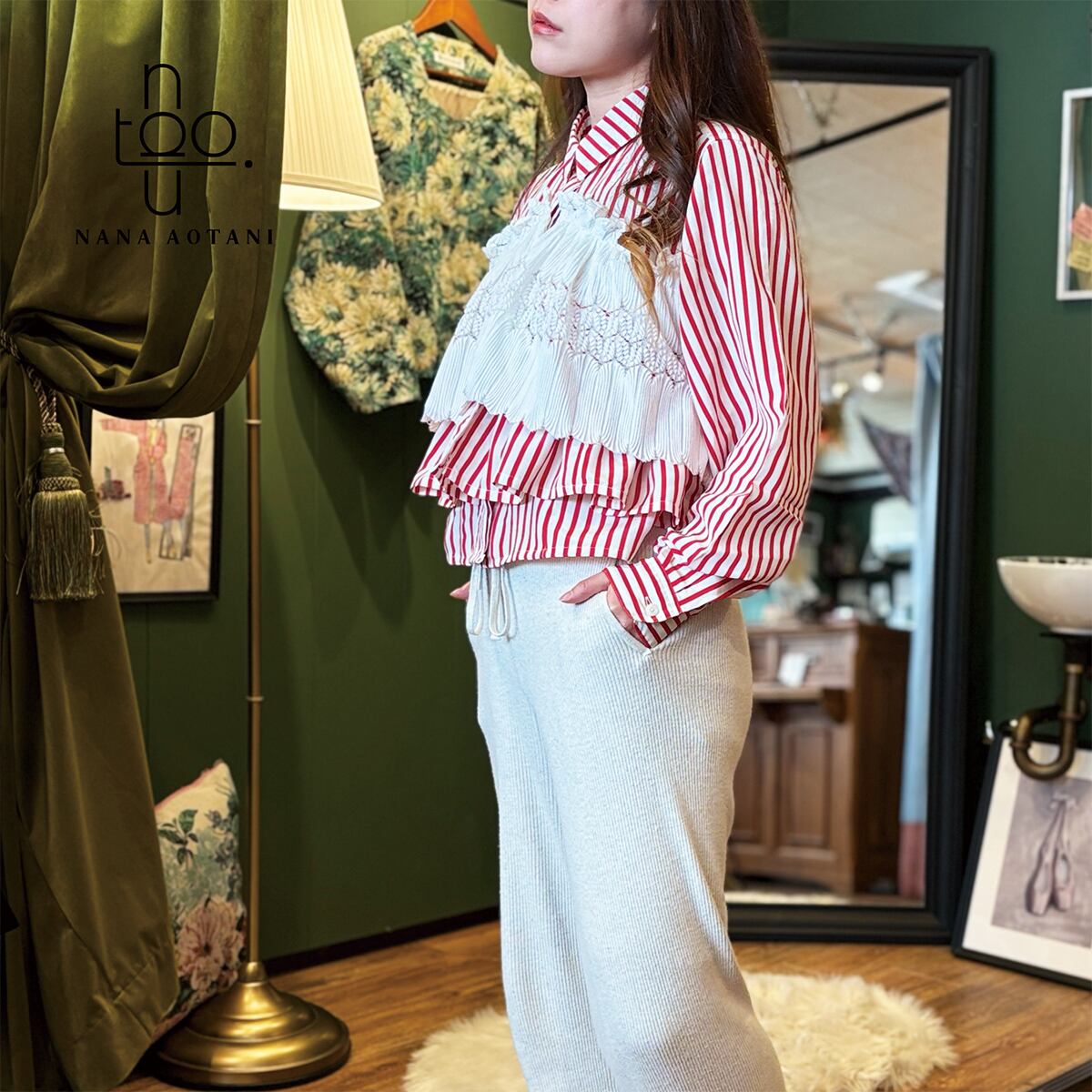 [リメイク作品] 古着のレッドストライプシャツと古着のレースのトップスを使ってリメイク作品に仕上げました。 後ろのレース部分は固定はしておりませんが、ゴムを通しているので程よくフィットします。 size バスト:106cm 着丈 :48.5cm 袖丈 :57cm カフス周り:18.5cm 首周り:40.5cm 肩幅 :40cm ポリエステル 100% 中古品:古物商許可証 大阪府公安委員会 許認可番号 第62233R044581号
