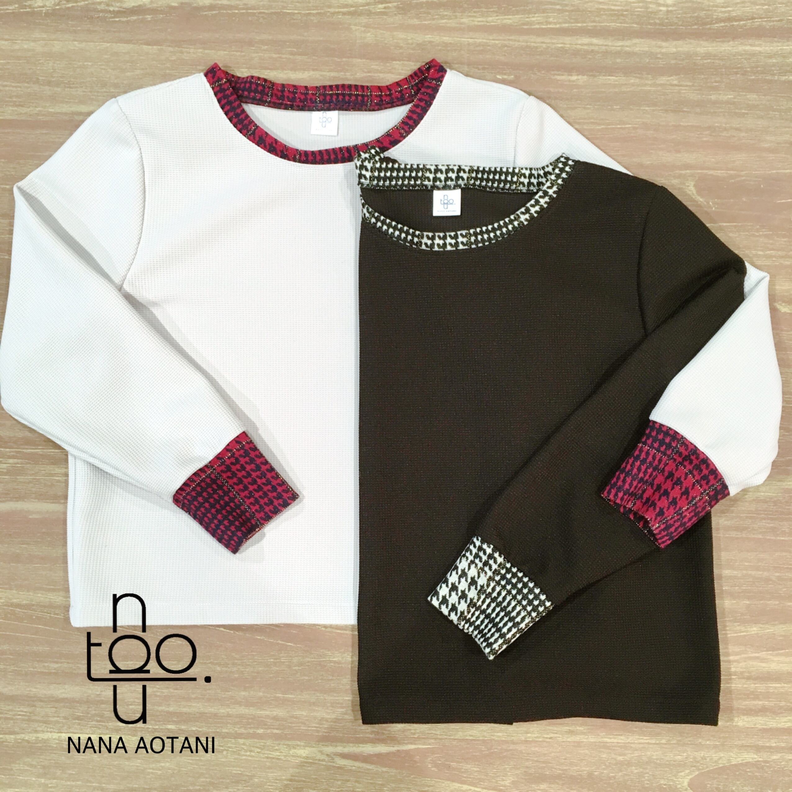 よくあるカットソーのリブの部分を可愛い柄ニットにしたらどうだろうと思い製作致しました。