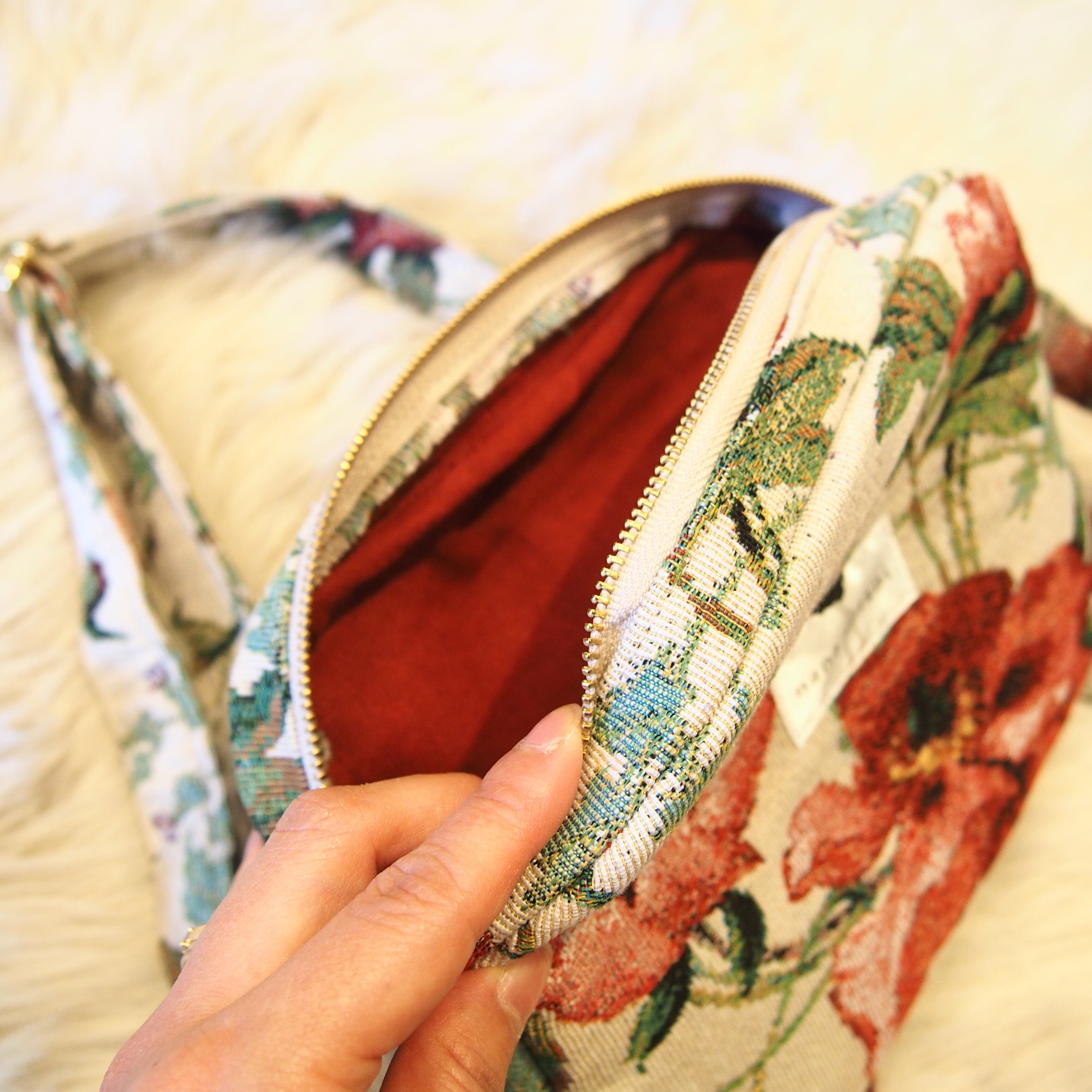 真っ赤なお花が映えるゴブラン生地でお作りしてみました^^